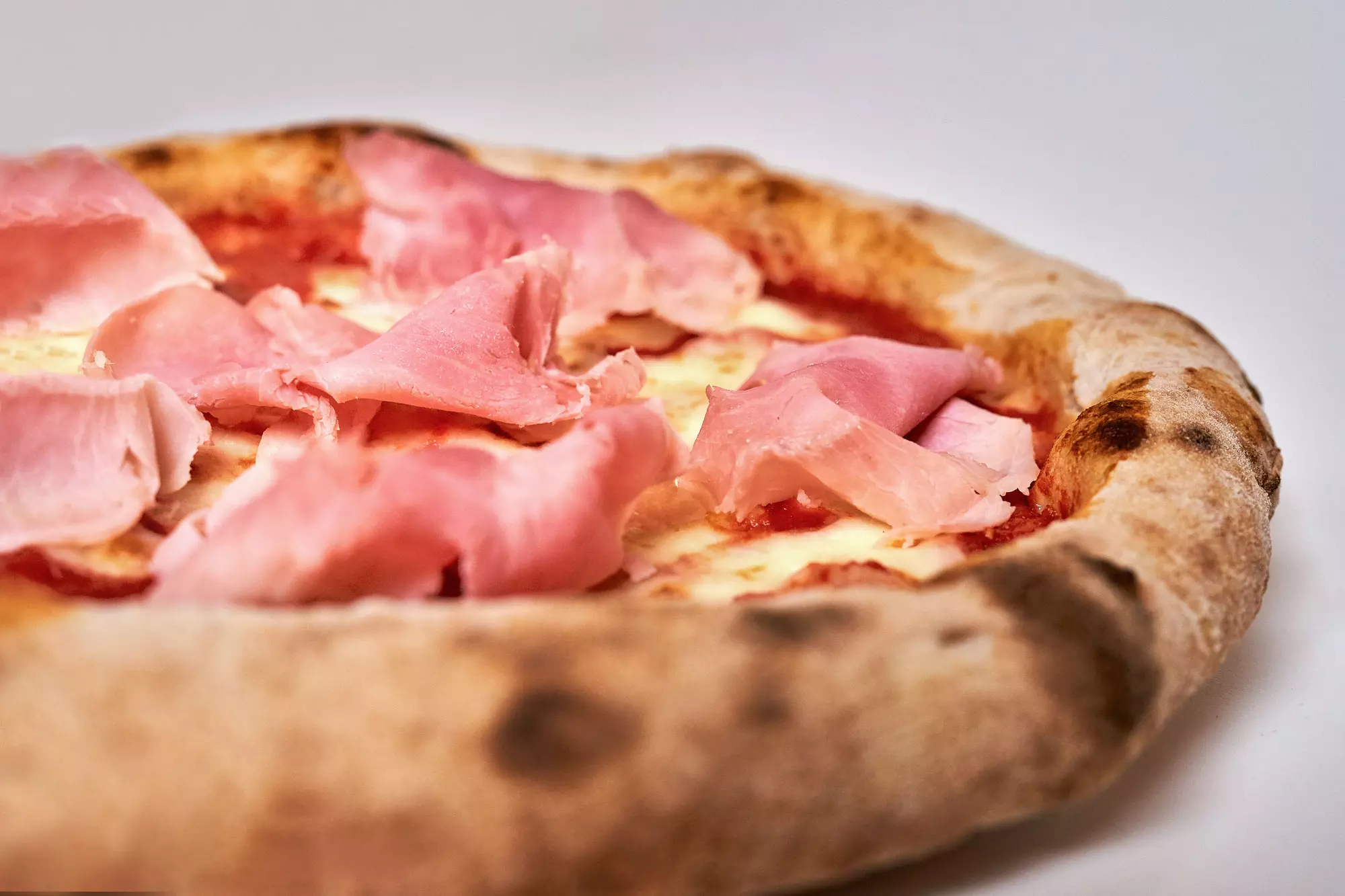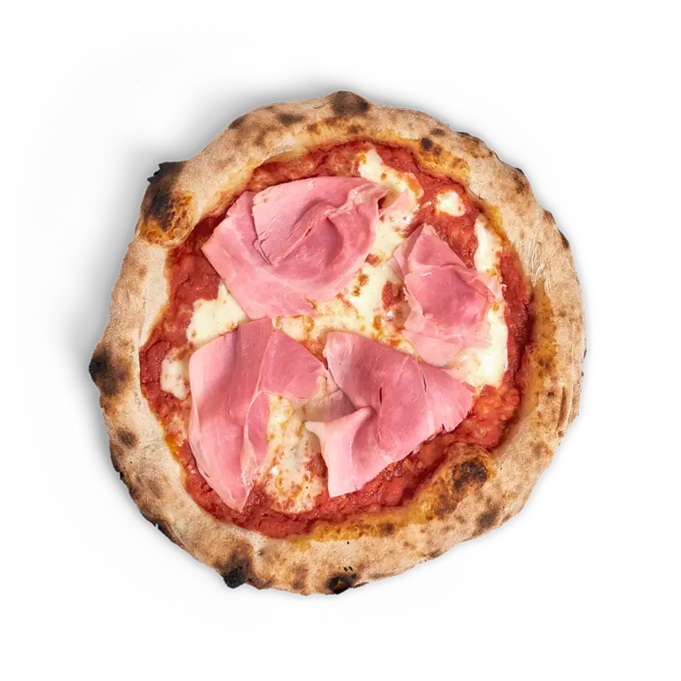 È la Magnifica Rotonda farcita con Pomodori Pelati Italiani, Fiordilatte e Prosciutto Cotto. PROSCIUTTO ha le stesse caratteristiche incredibili di MARGHERITA con l’aggiunta della farcitura di Prosciutto, che rende il prodotto delicatamente più saporito.